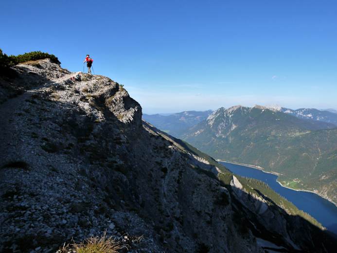 Anspruchsvolle, aber lohende Wanderung im Karwendel in Tirol: Von Pertisau über den Hochwald geht es durch Latschefelder und einen Grat auf die Seebergspitze auf 2.085 m. Der Gipfel wartet mit toller Aussicht auf die umliegenden Berge des Karwendelgebirges und auf den Achensee.