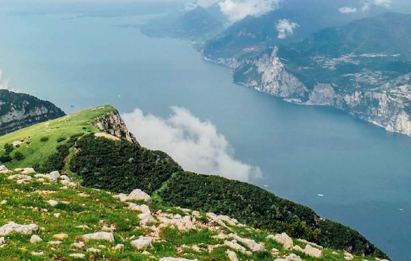 Ausgangspunkt ist in Torbole (82 m). Das Nächtigungsziel, das Rifugio Altissimo Damiano Chiesa, liegt knapp 2.000 Hm höher. Am nächsten Tag geht es von der nördlichen Schulter des Bergrückens hinunter (Bocca di Navene, 1.425 m) und vorbei an der Kabinenbahn gleich wieder nach oben. Ziel des zweiten Tages sind Punta Telegrafo (2.200 m) und Rifugio Telegrafo (2.147 m). Am dritten Tag geht es abwärts. Auf dem Weg 654 steigt man 1.200 Hm oft alleine durch spektakuläre Landschaften ab bis nach Brenzone. Von hier aus kann man sich gemütlich mit dem Boot oder Bus zurück nach Torbole chauffieren lassen.