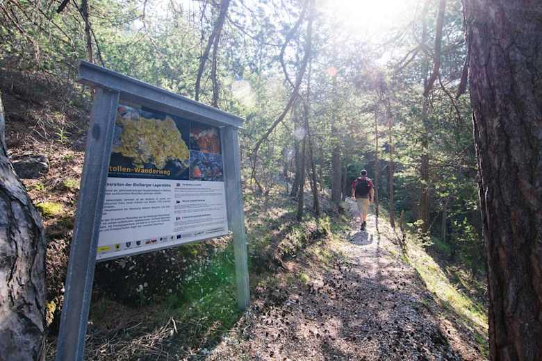 Im Berg in den Gailtaler Alpen in Kärnten: ein großartig aufbereiteter Stollenwanderweg gibt Einblicke den Alltag des Bergbaus im Bleiberger Tal. 28 von den ursprünglich 50 Stollen sind heute noch besichtigbar. Sechs Rastplätze bieten eine hervorragende Aussicht und laden zum Picknick mit der ganzen Familie ein.