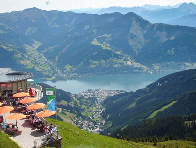 Der Abstieg erfolgt über die Aufstiegsroute oder bequem mit der Schmittenhöhebahn oder mit dem trassXpress nach Zell am See und mit Bus/Zug retour nach Piesendorf.