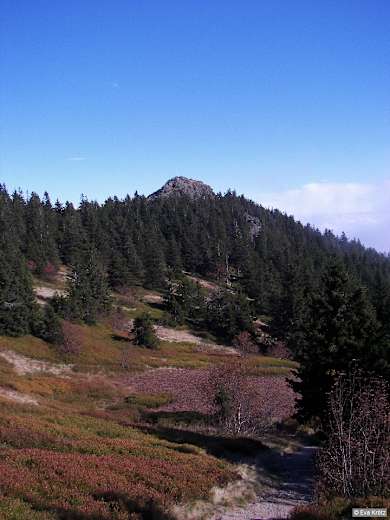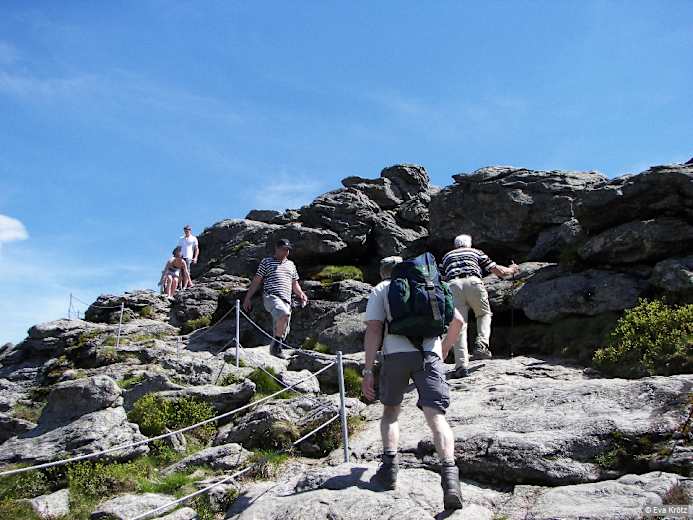 Gleich links vom Gipfel des Großen Arber liegt der Wagnerkopf, von dem aus man einen schönen Blick auf den Großen Arber hat. Foto: Eva Krötz, Rother Bergverlag