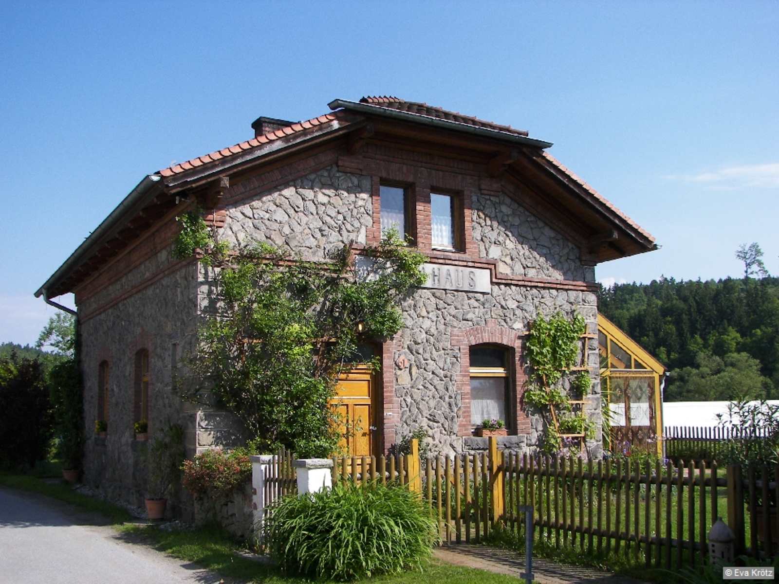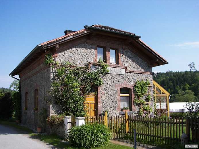 Starten wir vom Parkplatz in Fischhaus, wandern wir auf dem Ilztalwanderweg und mit dem Goldsteig Richtung Oberilzmühle am liebevoll restaurierten Bahnhof mit Töpferei vorbei. Vom Bahnhof kommend wenden wir uns nach links. Bis zur Veste Oberhaus bei Passau folgen wir stets dem gelben S des Goldsteigs. Foto: Eva Krötz, Rother Bergverlag