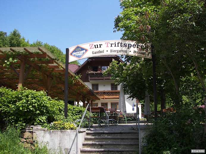 Auf ebenem Uferweg haben wir schnell den herrlichen Biergarten des Gasthofs Zur Triftsperre am Ilzufer erreicht. Hier können wir eine Rast einlegen und uns für den Weiterweg stärken. Foto: Eva Krötz, Rother Bergverlag