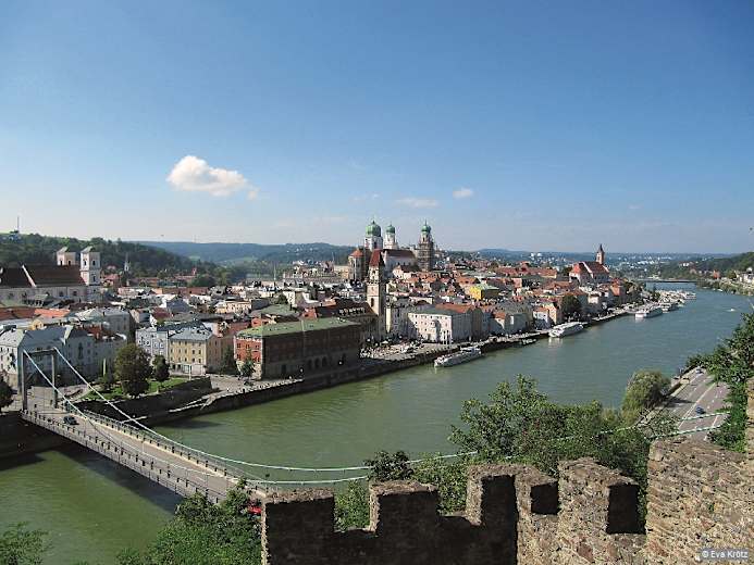 Kurz vor dem Ziel – Blick von der Veste Oberhaus auf die Dreiflüssestadt Passau. Foto: Eva Krötz, Rother Bergverlag Bildergalerie (9)
