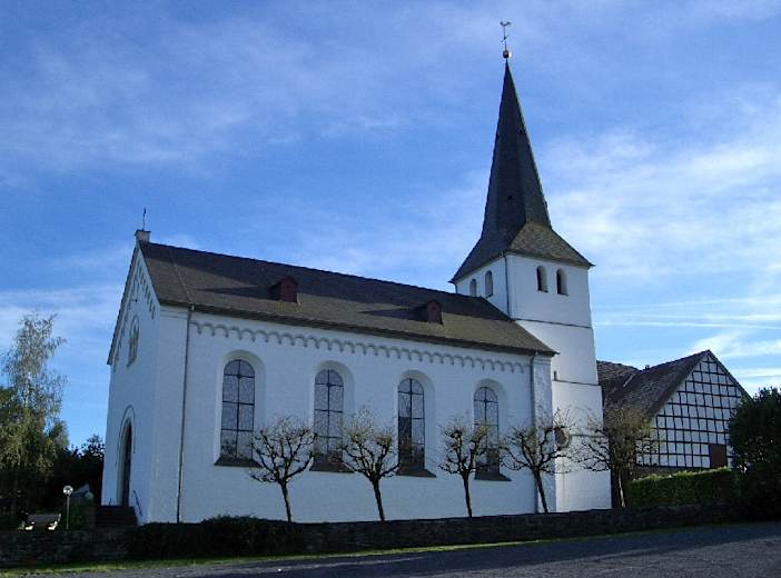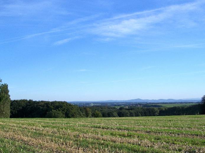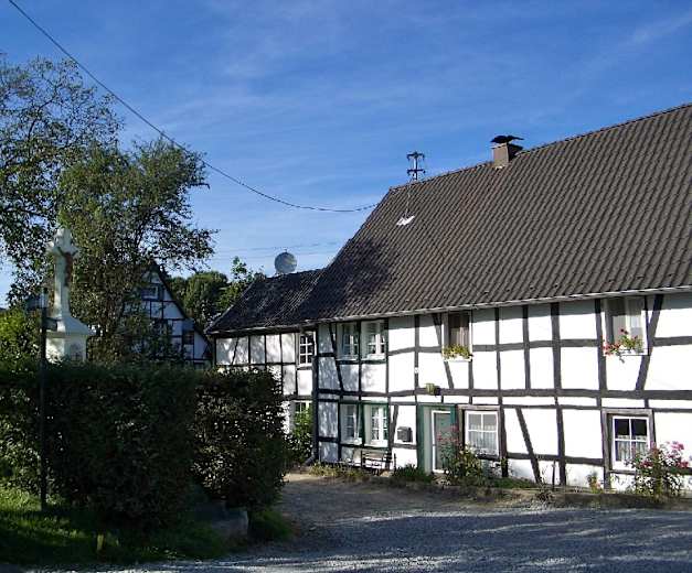 Der Straße folgen wir kurz rechts und biegen gleich wieder links ein nach Schnellhaus (A3). Die Dörfler hier oben sind um ihre Fernsicht zu beneiden: Außer dem Siebengebirgs-Panorama zeigt sich bei klarem Wetter im Westen auch die Kölner Bucht samt Dom.