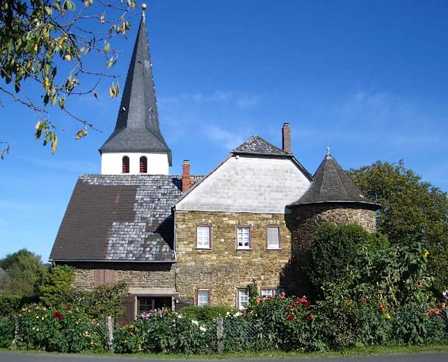 Schon im 12. Jh. stand auf dem Felsen hoch über der deutschen Agger eine Burg. Auf ihren Resten wurde im 16. Jh. die heutige Burg Honrath aus Bruchsteinen errichtet, die Mauern dicht am romanischen Turm der Kirche. Heute ist sie von einem Bauerngarten umgeben und Burghof samt Gotteshaus bilden ein harmonisches Ensemble. Unten im Aggertal auf Schloss Auel geht es weniger rustikal zu; das schöne Barockschloss von 1763 ist nicht nur als Hotel-Restaurant (auch Bistro und Kaffeehaus), sondern auch als Kulisse für feine Feste, Hochzeiten und Veranstaltungen beliebt.