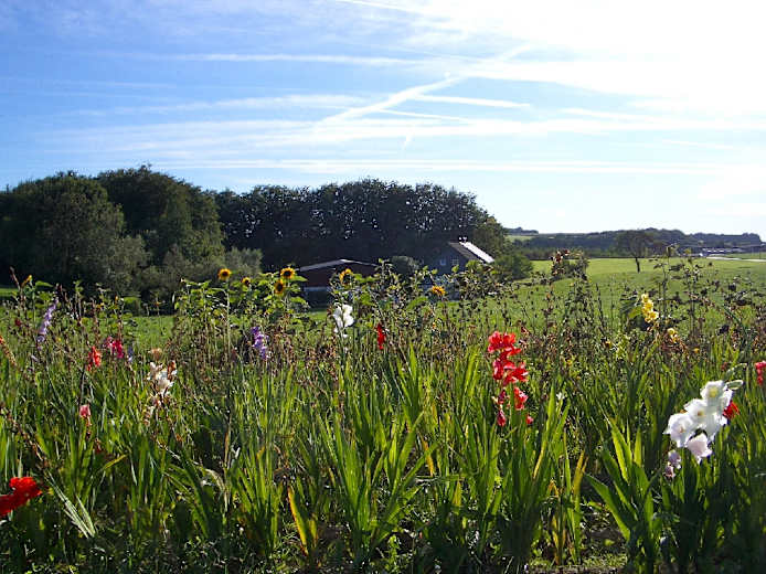 Wir folgen der Straße kurz rechts und laufen gleich wieder links (Winkel), mit herrlichem Blick über die weiten Auenwiesen. Am Brückerhof vorbei geht es zum Hitzhof, dort rechts aufwärts (Winkel).
