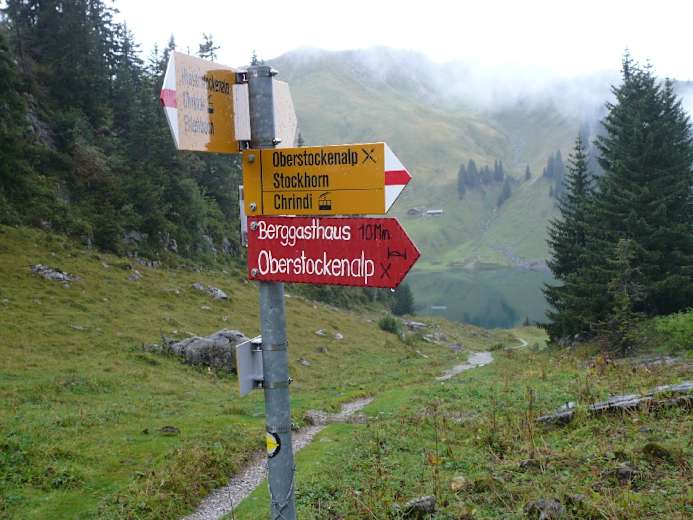Beim Aufstieg, von der Baachegg via Oberi Walalp und Bättelwägli zum Oberstockensee, dann hinauf zum Berggasthaus Oberstockenalp (1.776 m); weiter zum Stockhorngipfel oder zum Hinterstockensee; 1 Std. bis Oberstocken.