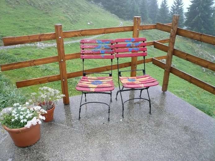 Ein rutschiger Rücken bringt uns an den Fuß des Stockhorns. Um seine Felsen herum zum Berggasthaus und zur Bergstation der Luftseilbahn hinauf; durch die Gipfelgalerie gelangen wir zu den sogenannten Stockhornaugen.