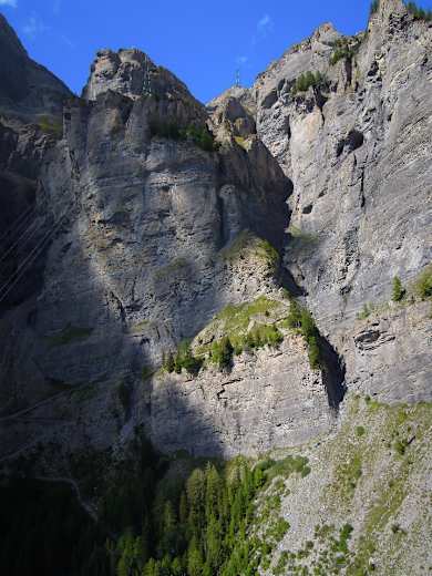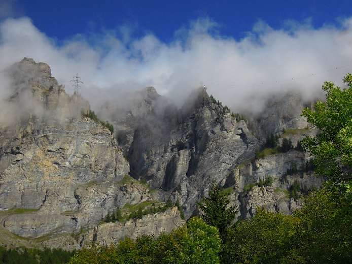Am nördlichen Dorfrand von Leukerbad fällt die Entscheidung: zu Fuß oder mit der Bahn auf den Gemmipass. In der frischen Morgenluft wandert sich’s gut, doch so auf halber Strecke erscheint uns die Theorie, dass „Gemmi“ vom französischen gémir (= stöhnen) stammen soll, sehr verständlich.