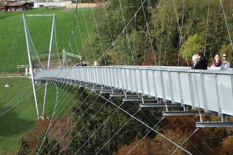 Den Hang entlang und über einen Rücken hinab in die Chäle, von wo sich ein steiler Zickzackweg durch den Howald hinunterwindet. Weiter nach Wilerallmi, 1.205 m, zur Talstation eines Skiliftes und immer den Wegweisern nach auf Sträßchen und Wegen über Zälg ins Dorf Sigriswil.
