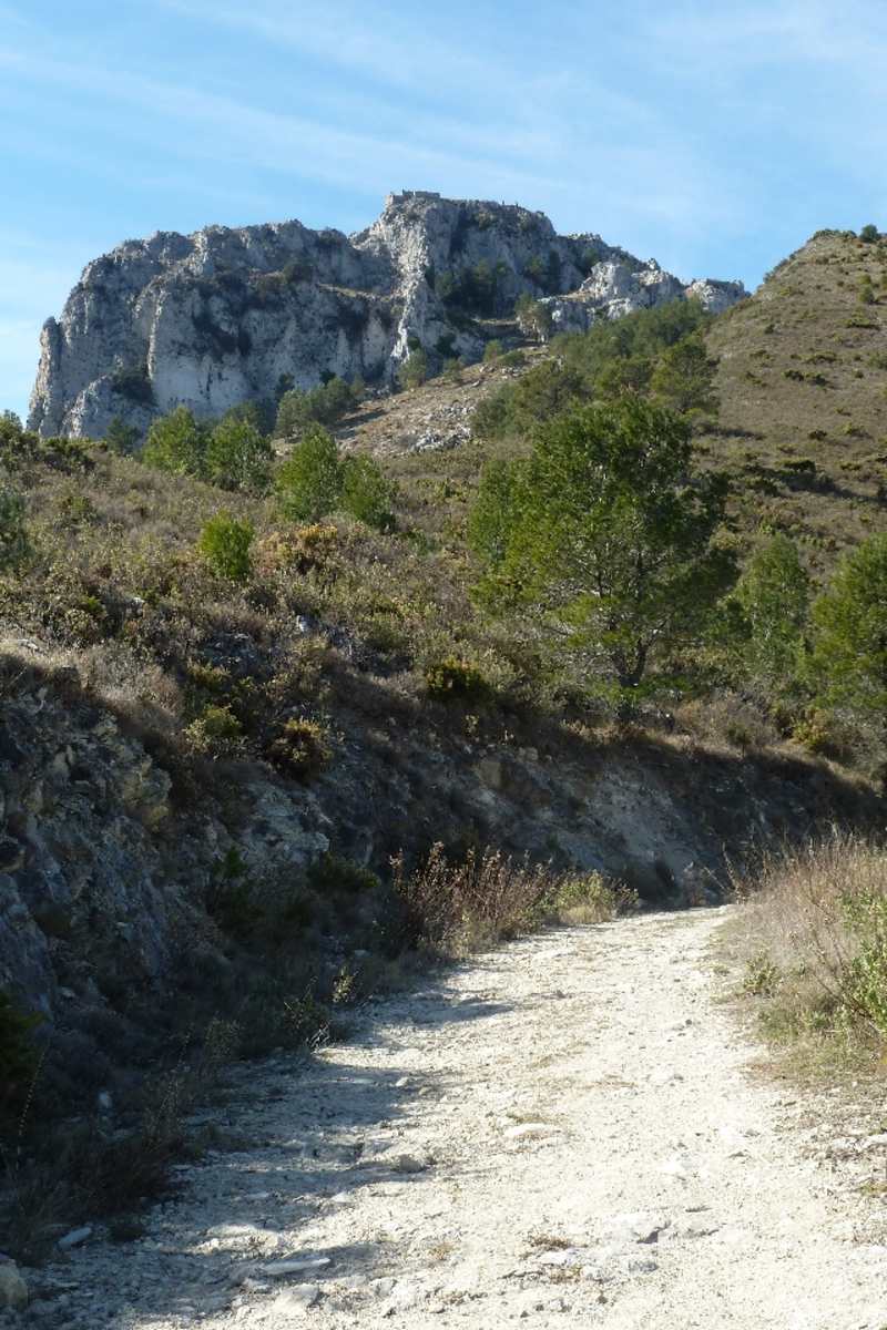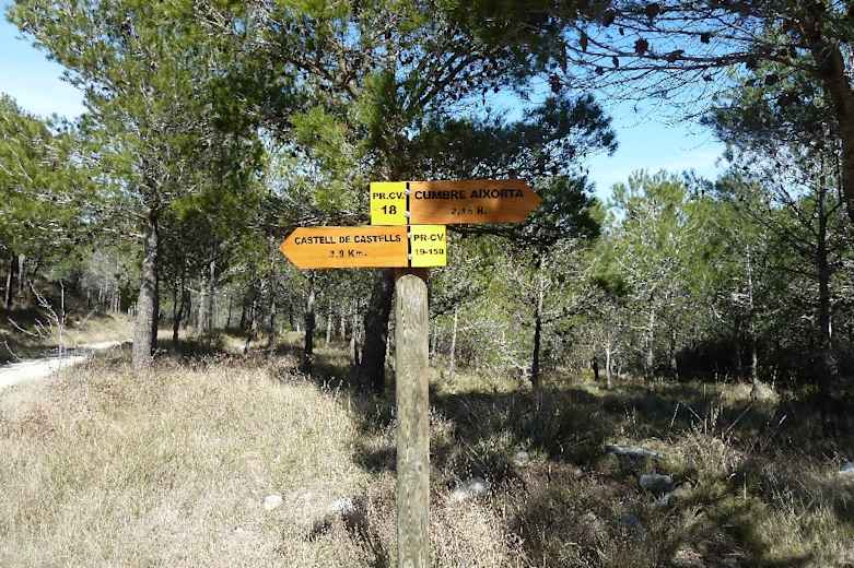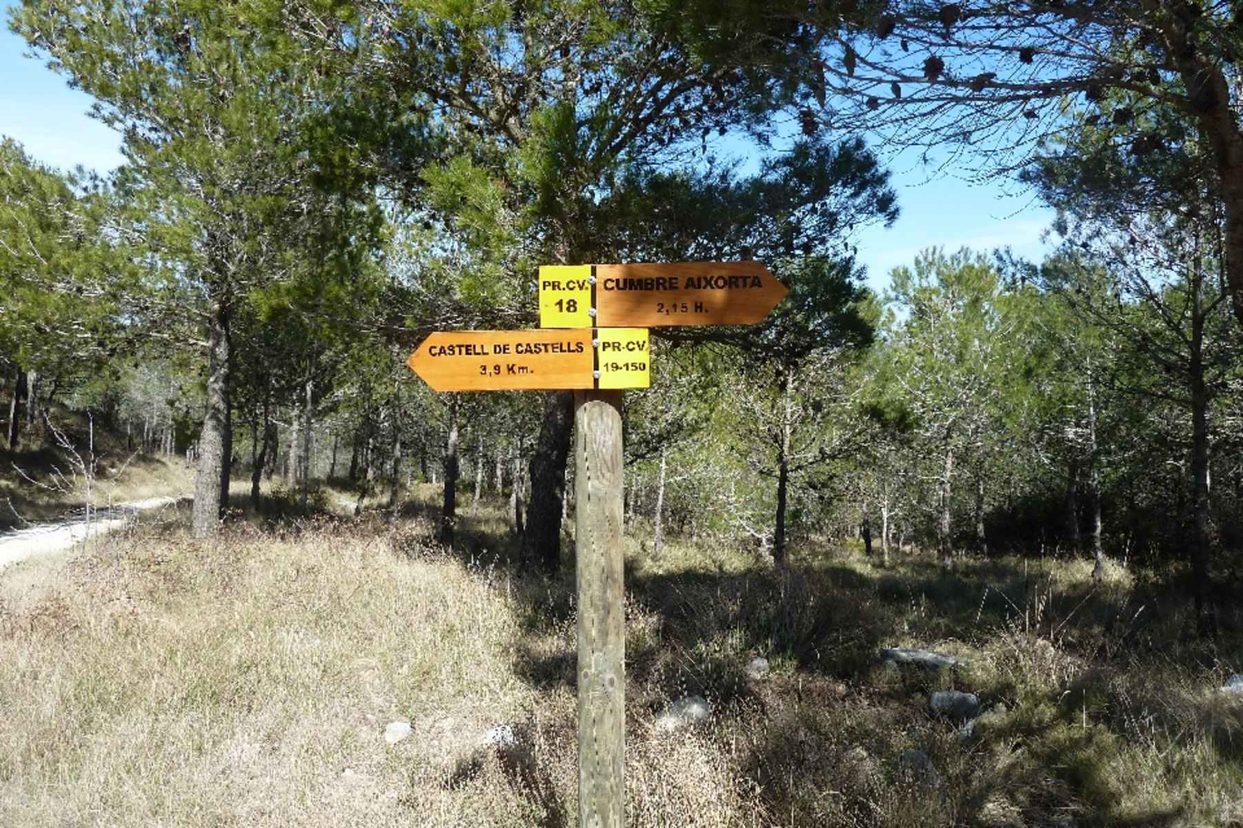 Vom Ausgangspunkt bis nach Castell de Castells mit den PR-CV 149-Markierungen; 1 Std. einfach, ca. 500 Hm.