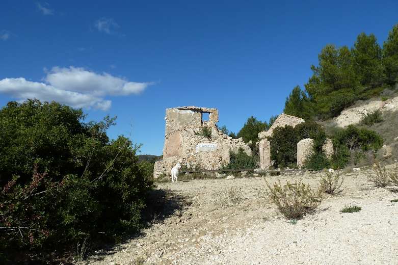 Zurück an der verfallenen Finca (an der Gabelung links) gehen wir links hinauf und dann rechts über die Hochebene südostwärts zu einer Rinne. Durch diese in ca. 15 Min. zu einem breiteren Weg hinab, dort rechts, dann links zur Ermita la Vella und auf unserem Hinweg zum Ausgangspunkt.