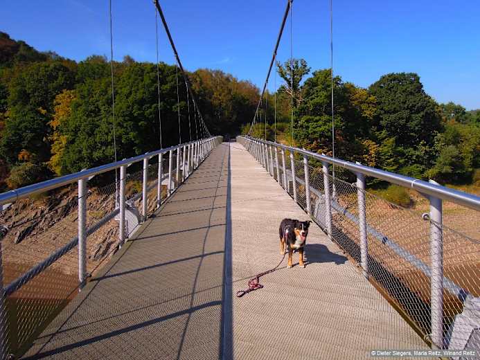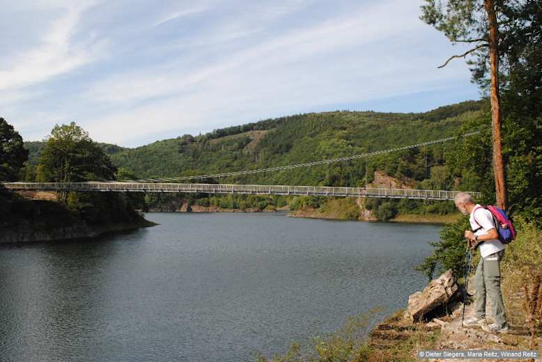 Den Urftsee überqueren wir über die 124 m lange, 2009 erbaute Victor-Neels-Brücke (Hängebrücke). Foto: Dieter Siegers, Maria Reitz, Winand Reitz, Bergverlag Rother