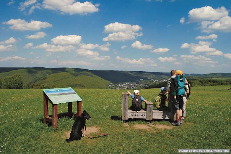 Von hier haben wir einen grandiosen Blick auf Gemünd-Malsbenden und das Urfttal. Foto: Dieter Siegers, Maria Reitz, Winand Reitz, Bergverlag Rother