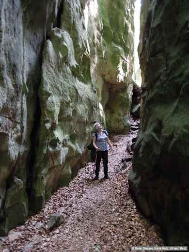 Auf dem Weg nach Consdorf geht es weiter an spektakulären Felsen wie Eulenburg, Goldfralay oder Rittergang mit ihren engen Schluchten vorbei. Foto: Dieter Siegers, Maria Reitz, Winand Reitz, Bergverlag Rother