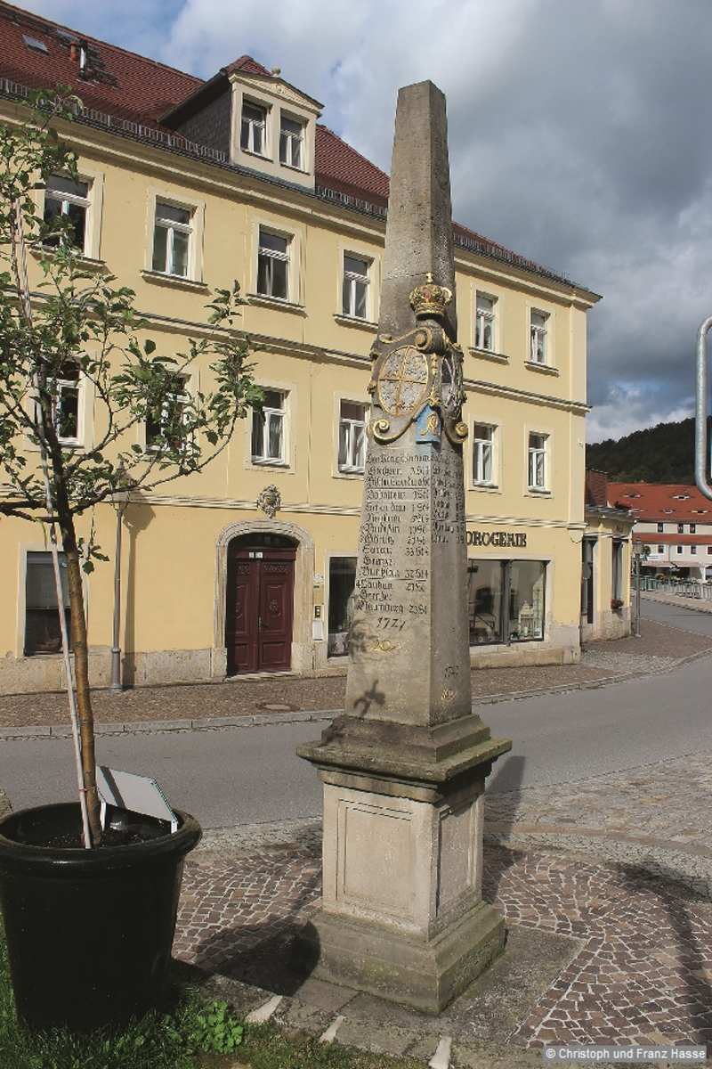 Die historische Postmeilensäule in Königstein. Foto: Christoph und Franz Hasse, Bergverlag Rother GmbH Bildergalerie (3)
