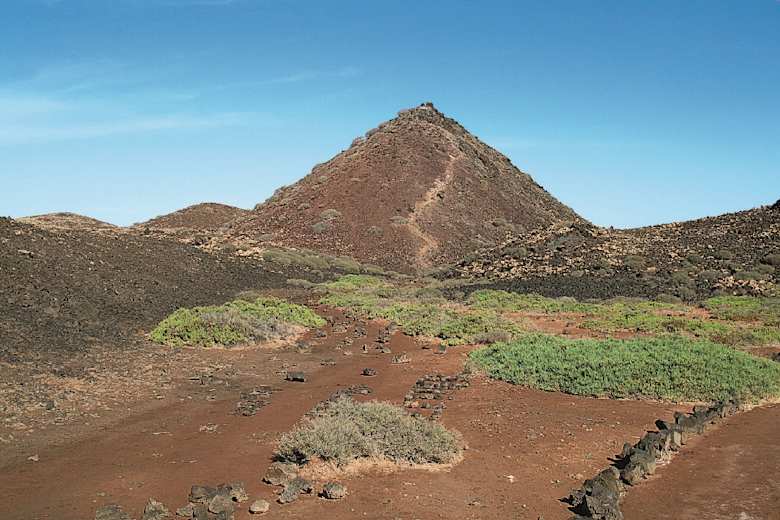 Links von der Ferienstadt Playa Blanca erhebt sich der Vulkankrater der Montaña Roja, rechts die Ajaches-Berge, an klaren Tagen kann man auch Puerto del Carmen ausmachen. Mindestens ebenso eindrucksvoll zeigt sich Lobos selbst: Dutzende von sogenannten „hornitos“, kleine, wie überdimensionale Maulwurfshügel aufgehäufte Schlote, geben der Insel ihren ganz eigenständigen Charakter. Diese vulkanischen Gebilde entstanden durch aus der Lava austretende Gase.