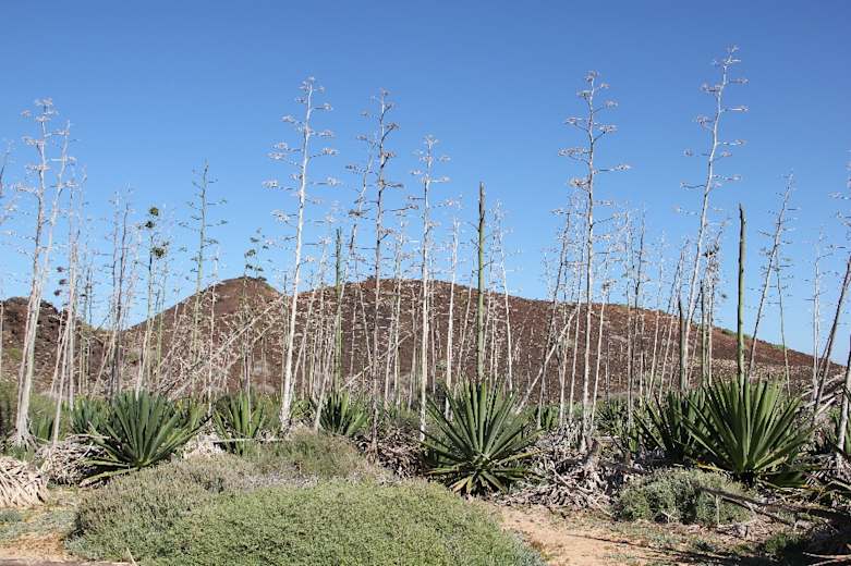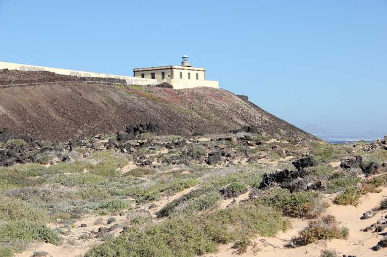 An der Gabelung nach der Kehre hält man sich geradeaus und macht kurz vor den beiden Hügeln rechts einen Abstecher zu einer Kolonie von Agaven, deren bis zu 8 m hohe Blütenstände ein kleines Wäldchen bilden. Wieder zurück auf dem Hauptweg taucht nun der Faro de Martiño an der Nordspitze der Insel auf. Ein betonierter Weg führt auf die aussichtsreiche Anhöhe. Von dem Vorplatz des 1863 erbauten Leuchtturms bietet sich ein grandioses Panorama auf die Südküste Lanzarotes.