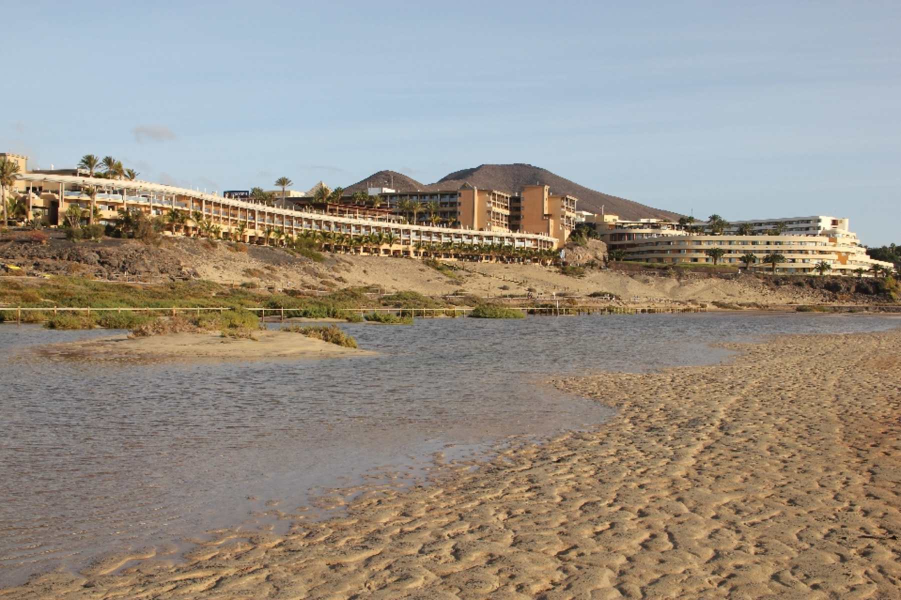 Die Wanderung beginnt an der Durchgangsstraße (FV-2) in Jandía an der Bushaltestelle vor dem Shopping Center Atlántica, in dem sich auch das Hotel Faro Jandía befindet. Gegenüber dem Einkaufszentrum führt ein Bohlenweg durch das Naturschutzgebiet von El Saladar zum Leuchtturm von Jandía. Am breiten Sandstrand wenden wir uns nach Osten und wandern auf den weithin sichtbaren Club Aldiana zu.