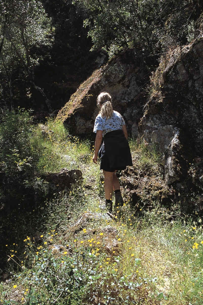 Von der Passhöhe der Bocca a Croce zweigt in westlicher Richtung eine Pistenstraße ab, die nach 800 m (10 Minuten) einen Bergsattel überquert (Punkt 272 m, Parkmöglichkeit). Hier verlassen wir die Pistenstraße, die zum Golf von Girolata hinabzieht, auf einem deutlichen, in westlicher Richtung abzweigenden Pfad. Er ist teilweise etwas abschüssig und führt auf der rechten Kammseite durch Buschwald an den Fuß der Punta Castellacciu heran (10 Minuten).