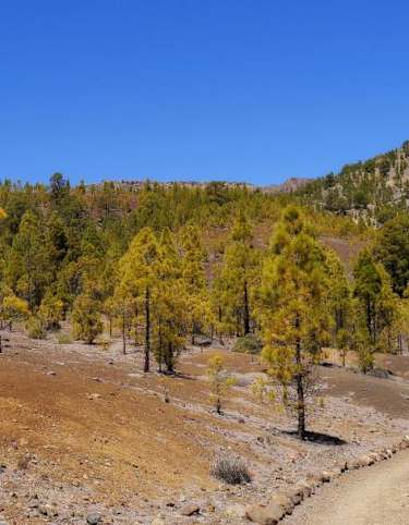 Der Weg steigt nun deutlich an und erreicht nach einer guten Viertelstunde einen schwach ausgeprägten Sattel mit Blick nach El Palmar – links könnte man Richtung La Caleta absteigen, wir aber steigen rechts über den Rücken hinauf zur Pistenstraße (gut 5 Min.).