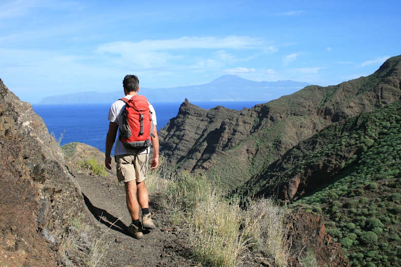 Rundtour auf der kanarischen Insel La Gomera zur Steilküste an den Abstürzen der Enchereda-Kette: Höhepunkt der Wanderung durch den kargen, einsamen Nordosten in Hermigua (351 m) ist der herrliche Küstenweg von El Palmar zur schwarzsandigen Playa de La Caleta.