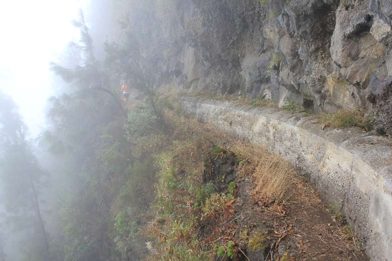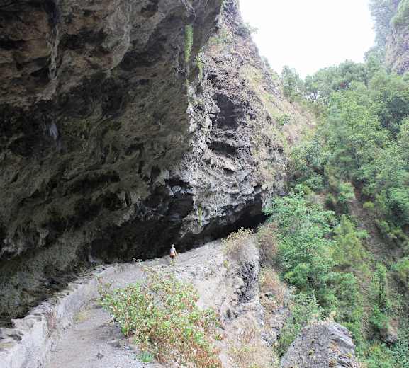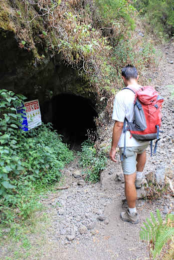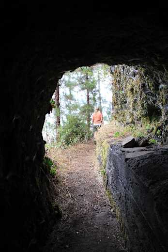 Hier kreuzt ein Wasserkanal, der rechts von der Galería de Las Nieves kommt, den Barrancogrund. Neben diesem tritt der markierte Wanderweg links in einen Galeriegang ein. Die folgenden Tunnel sind zwar durch "Fenster" meist ausreichend beleuchtet, eine Taschenlampe wird aber dennoch dringend empfohlen (gut auf die Decke und auf Felsvorsprünge achten!).