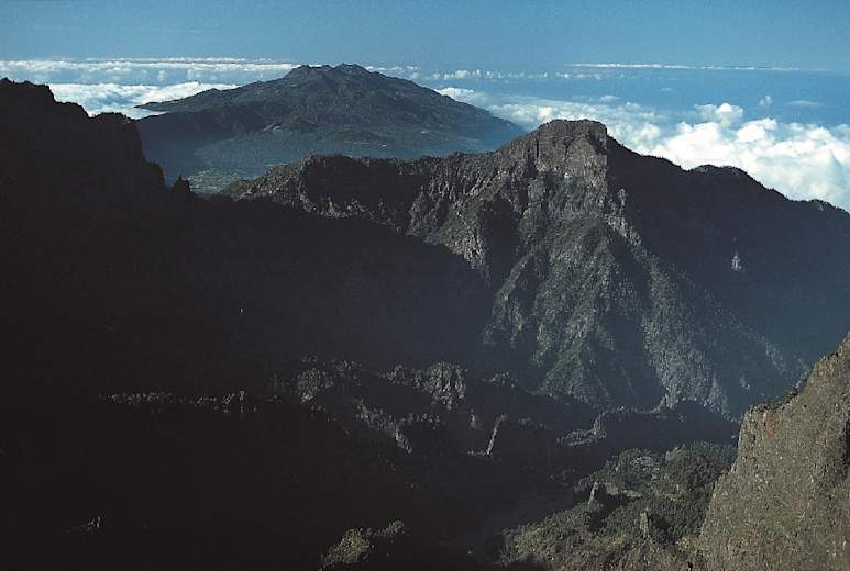 Spektakuläre Tiefblicke am Weg zum höchsten Gipfel Roque de los Muchachos (2.431 m) auf der kanarischen Insel La Palma: Seitdem der höchste Gipfel La Palmas durch eine Straße erschlossen ist, übt er nur mehr einen begrenzten Reiz auf die Wanderer und Bergsteiger aus.