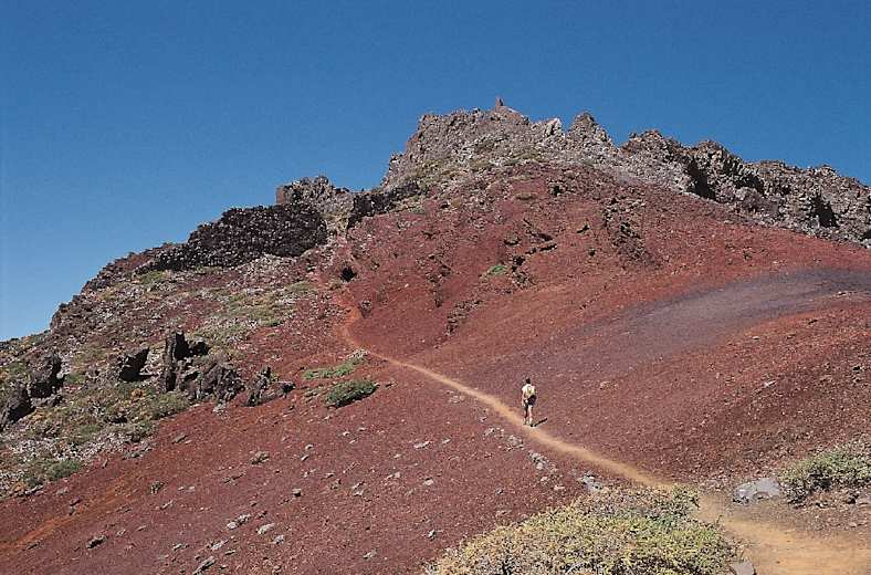 Dennoch gibt es einige Wege, die Interesse verdienen, ganz besonders der hier vorgestellte Wanderweg entlang dem Kraterrand, der Wanderer ständig mit eindrucksvollen Tiefblicken in die Caldera de Taburiente verwöhnt.
