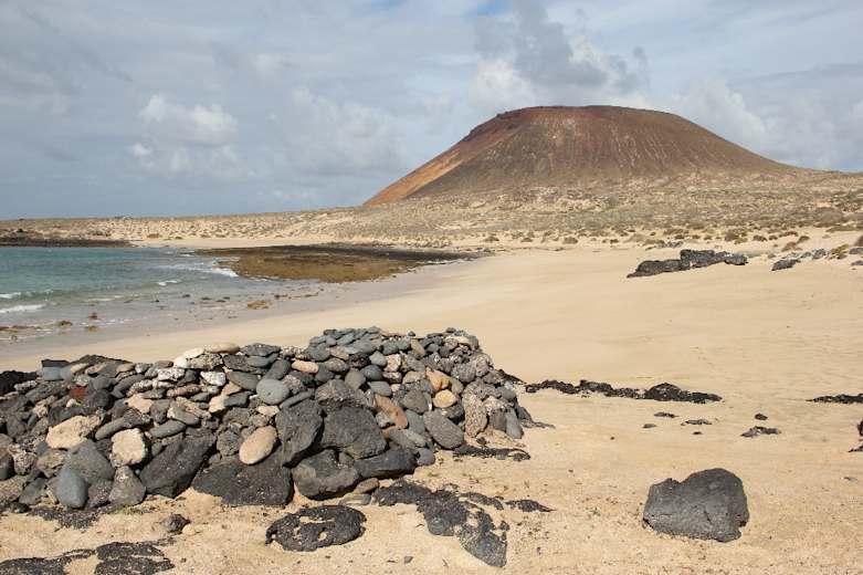 Einen Besuch wert ist vor allem die Montaña Amarilla – von der Gipfelsäule auf dem Vulkankrater bietet sich ein großartiger Ausblick auf La Graciosas Süden und das gegenüberliegende Famara-Kliff.