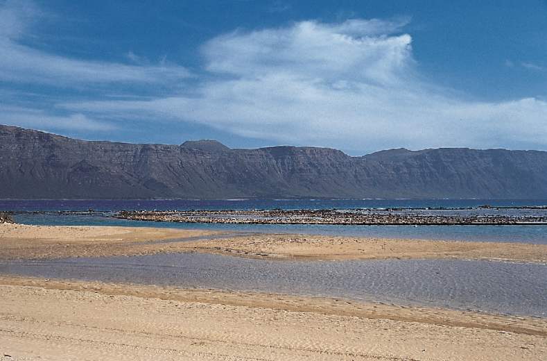 Idyllische Badebuchten am Gelben Berg auf der kanarischen Insel La Graciosa: Während die Playa de las Conchas (siehe Tour „Playa de las Conchas") im Nordwesten der Insel mehr fürs Auge ist, sind die Strände an La Graciosas Südküste hervorragende Badereviere.