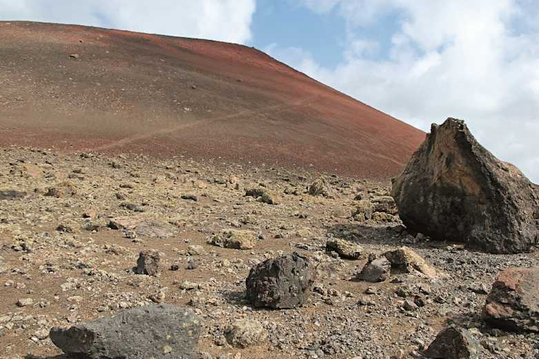 Der etwa hundert Meter hohe Vulkankegel entstand in der Schlussphase der Eruptionen im 18. Jahrhundert, als es über und unter der Erde nochmals richtig brodelte und das topografische Bild der Region völlig umgekrempelt wurde. Am Wegrand machen 15 Infotafeln mit dem vulkanischen Geschehen bekannt. Eines der Highlights am Fuß des an seiner Ostseite feuerroten Vulkans ist eine riesige vulkanische Bombe.