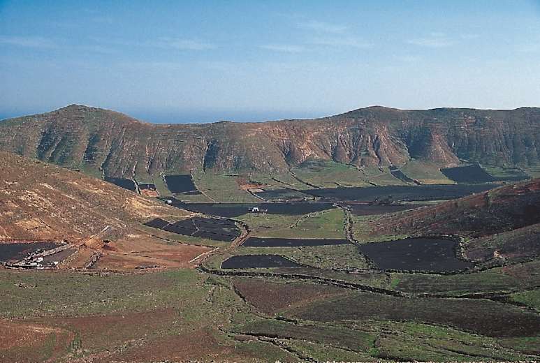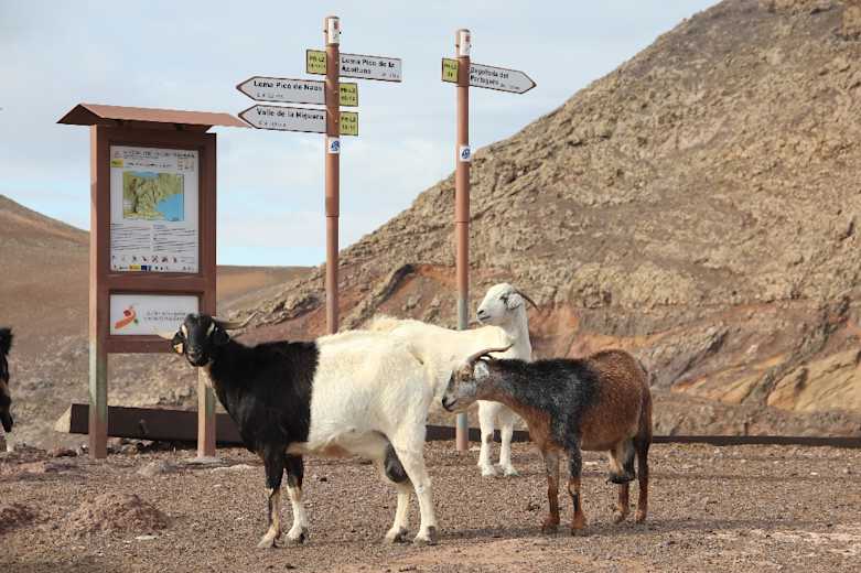 Zurück im Sattel geht es nun rechts das Valle de la Higuera hinab. An der ausgeschilderten Gabelung gut 150 m nach einem Strommast gehen wir links in Richtung der hoch auf dem Loma Pico de Aceituna gelegenen Stallungen (rechts könnte man Barranco-abwärts über Playa Quemada nach Puerto del Carmen wandern, s. Tour "Femés – Puerto del Carmen"). Nach einem steilen Schlussanstieg ist schließlich wieder der Bergrücken mit der Ziegenfarm erreicht, von dem wir auf bekanntem Weg zurück nach Femés kommen.
