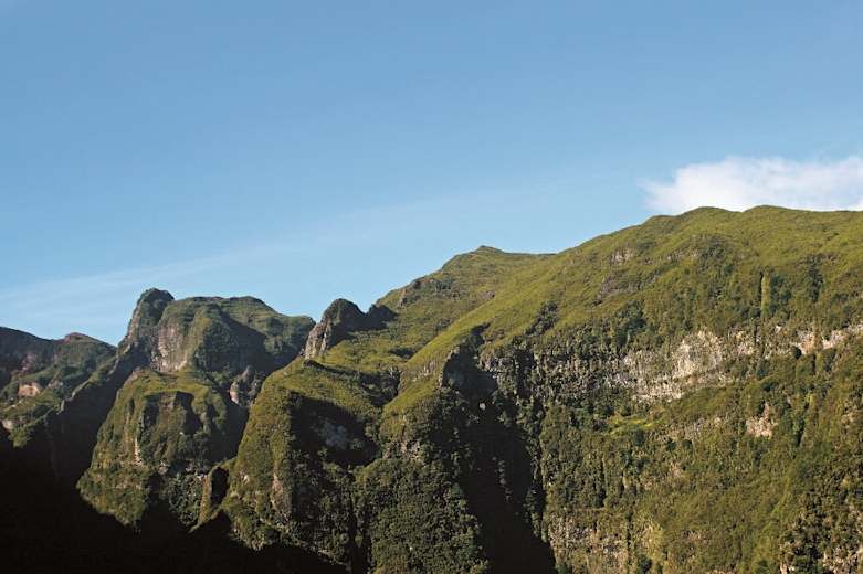 Die Levada ist größtenteils in eine Felswand geschlagen, wobei es immer wieder erstaunt, wie es Bäumen und Sträuchern gelingt, sich an die senkrechten Hänge zu klammern. Am Endpunkt der Tour stürzt sich ein ordentlicher Wasserfall in eine kleine Gumpe – abgehärtete Naturen nutzen das kühle Nass für ein Bad.
