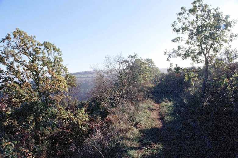 Links an der Kirche vorbei, danach links (rechts führt eine Versorgungsstraße zum Monte di Colleluce) und wenige Meter danach wieder scharf links. Kurz nach dem Abbiegen stehen rechts Reste eines Brunnenbeckens, und gut 10 Min. später scheint sich der Weg zu gabeln (nur eine Abkürzung, die einen Bogen des Weges abschneidet). Ca. 5 Min. später bei einer Gabelung nach links und bei den beiden folgenden Gabelungen nach rechts.