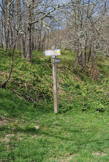 Immer den Pfosten folgend wandern wir bergauf. Nach einiger Zeit verläuft der Pfad kurz eben am Hang und steigt dann wieder an. Alte, flechtenbehangene Eichen, später auch Buchen, säumen den Weg, im Frühjahr leuchten die markanten Kerzen des weiß blühenden Affodills (Asphodelus albus). Mit zunehmender Höhe öffnen sich nach links die ersten Blicke auf die Picos de Europa.