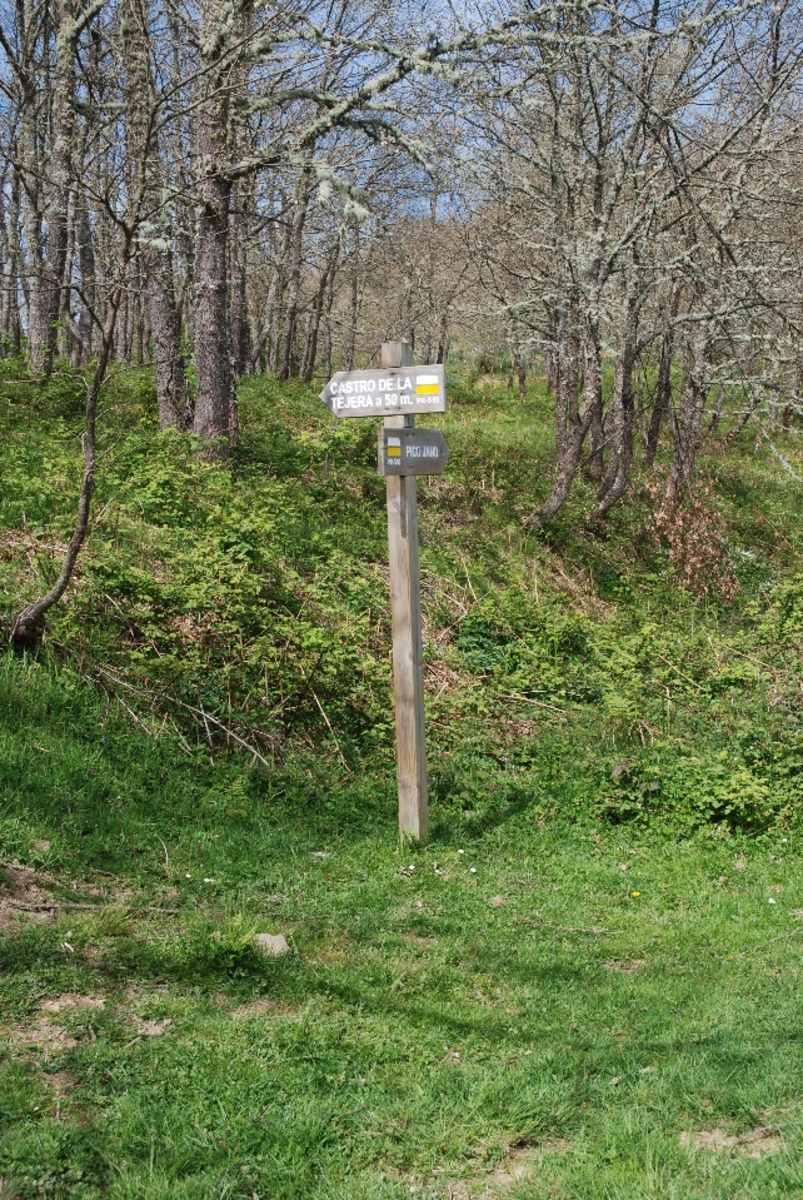 Der Weg führt links am See vorbei und biegt am Ende nach rechts ab. Gleich darauf ist nach links die steinzeitliche Siedlung Castro de La Tejera angeschrieben. Folgt man dem Wegweiser, findet man nach wenigen Dutzend Metern die Reste eines kleinen steinzeitlichen Grabes: im Boden eingelassene Steinplatten.