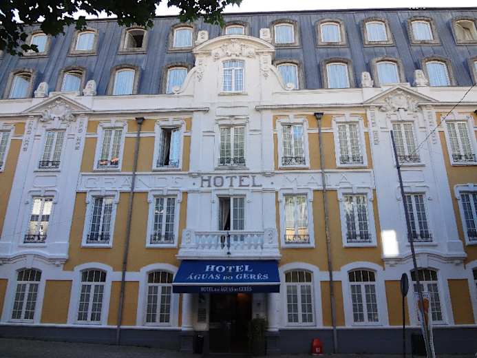 Beim Informationsbüro von Gerês finden wir eine Holztafel, die den Wanderweg beschreibt. Dieser führt zunächst entlang der sehr belebten Hauptstraße von Gerês in Richtung Norden (spanische Grenze). Wir kommen an zahlreichen Geschäften und Hotels vorbei. Gegenüber einer kleinen Kirche liegt auf der rechten Straßenseite das Kurbad. Von hier wenden wir uns nach links und gehen eine Asphaltstraße ein Stück bergan.
