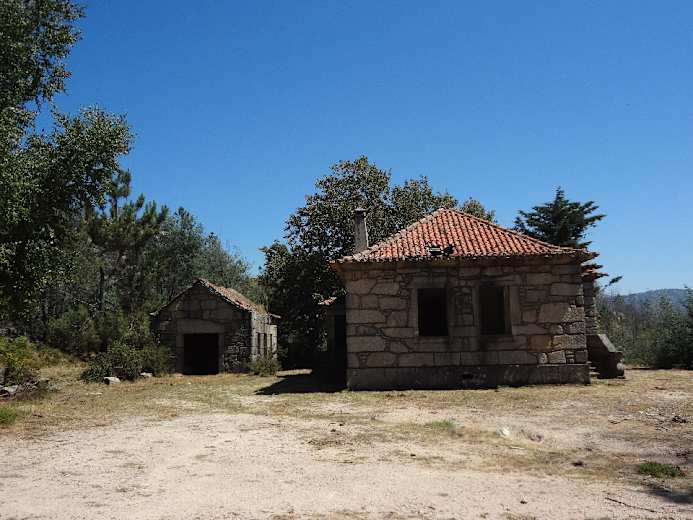 Bei einer Wegkreuzung gehen wir scharf nach links und schon bald wird der Abstieg etwas steiler. Wir kommen links an dem verfallenen Forsthaus Casa de Lamas vorbei. Vor dem Haus ist eine Wegverzweigung.