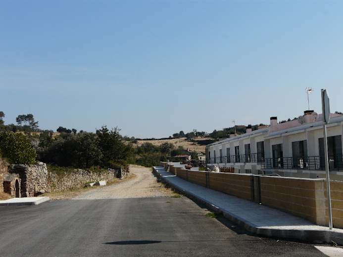 Wir biegen schließlich rechts in die Rua da Terronha ein und gelangen auf ihr zu einer Informationstafel, die den Einstieg in den Rundweg markiert. Der Wanderweg verläuft zunächst auf einer Schotterstraße, die bald in eine Sandpiste übergeht. Wir durchwandern zu Beginn eine Region, wo noch viele Bauernhäuser anzutreffen sind.