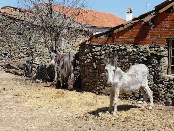 Danach haben wir das nächste Dorf, Aldeia Nova, erreicht. Der Weg führt an einer Bar (rechts) sowie an einigen sehr schönen Steinhäusern vorbei. Die Wegmarkierungen in Richtung „São João“ (oder „Turismo“) sind klar erkennbar. Wir folgen einer gepflasterten Straße bis ans Ende des Dorfes. Das letzte Haus auf der linken Seite verdient besondere Beachtung.