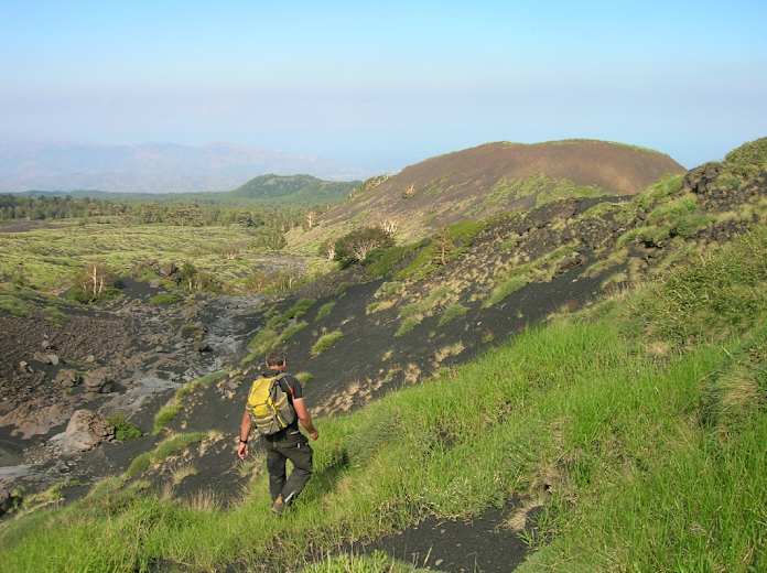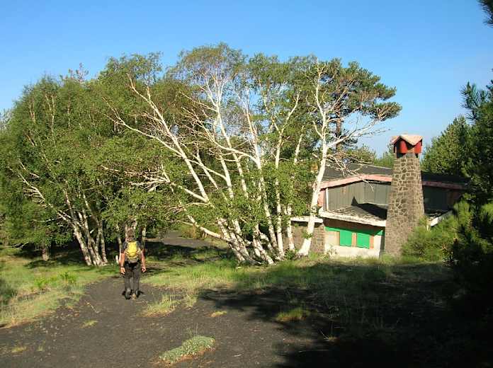 Wer nicht auf der Straße gehen möchte, verlässt diese auf ein rechts beginnendes Lavafeld und quert dieses ansteigend auf die gegenüberliegenden Birkenbäume zu. Dort trifft man durch eine Lücke in den Baumreihen auf die Straße und kommt nach rechts wieder zum Ausgangspunkt Rifugio Citelli zurück.