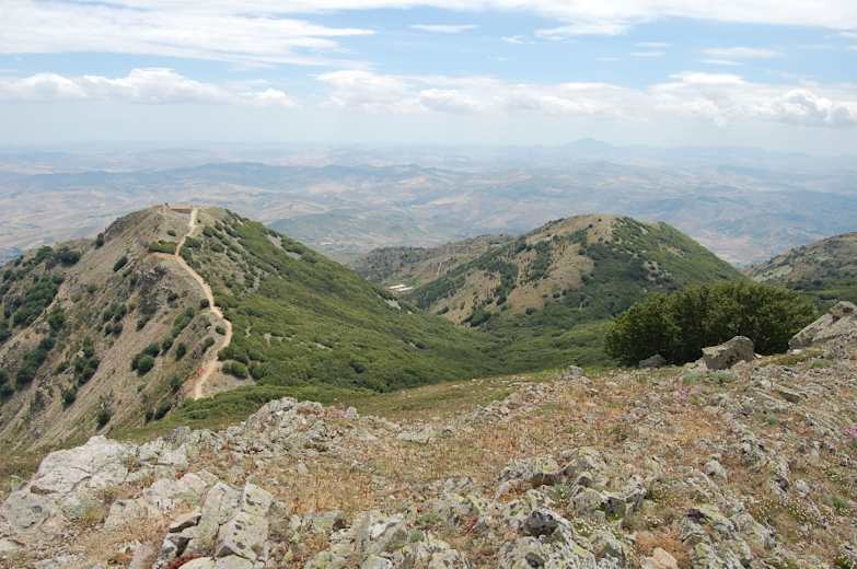 Zudem begegnet man als Rarität einigen der endemischen, unter Naturschutz stehenden Nebrodi-Tannen (Abies Nebrodiensis), deren botanischer Name darauf zurückgeht, dass die Madonie-Berge früher zu den Nebrodi zählten. Der Gipfel des Monte San Salvatore (1.912 m) ganz im Süden der Madonie bietet einen weitreichenden Rundblick, im Norden blicken wir fast in Augenhöhe über die Hochflächen des Pizzo-Carbonara-Stockes.