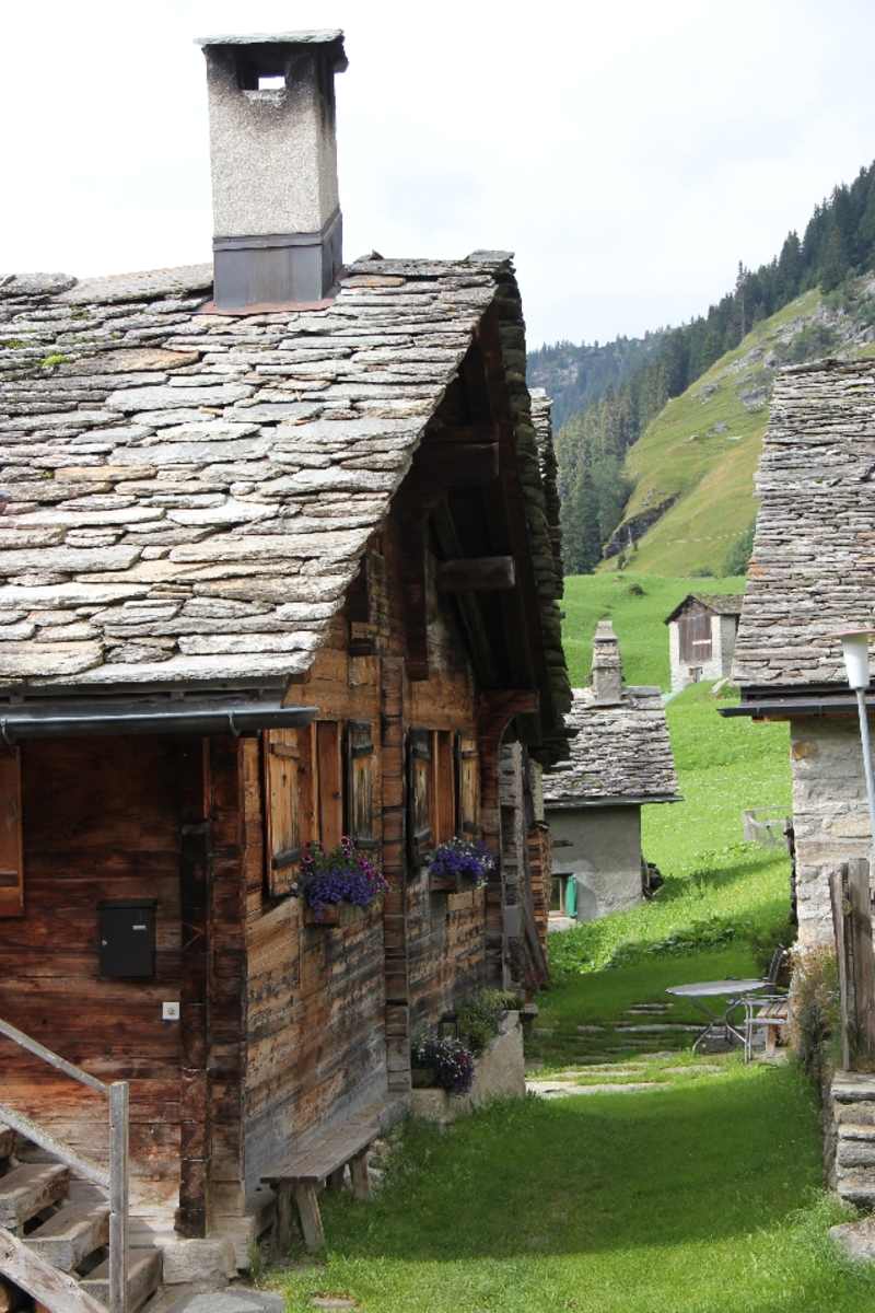 Vom Postamt in Vals Platz, 1.252 m, folgen wir der parallel zum Valser Rhein verlaufenden Dorfstraße taleinwärts, passieren linker Hand die Brücke zum Dorfplatz und biegen 75 m darauf in Höhe der gegenüberliegenden Pfarrkirche in einen steil bergauf führenden Pfad ein (Ausschilderung Zorts/Leis/Frunt/Zerfreila). Zwei Minuten danach wird linker Hand das fast 400 Jahre alte kleine Gandahus (kein Schild) erreicht, in dem ein Heimatmuseum untergebracht ist (Besichtigungstermine erfragen über Visit Vals, Tel. +41 81 9207070).