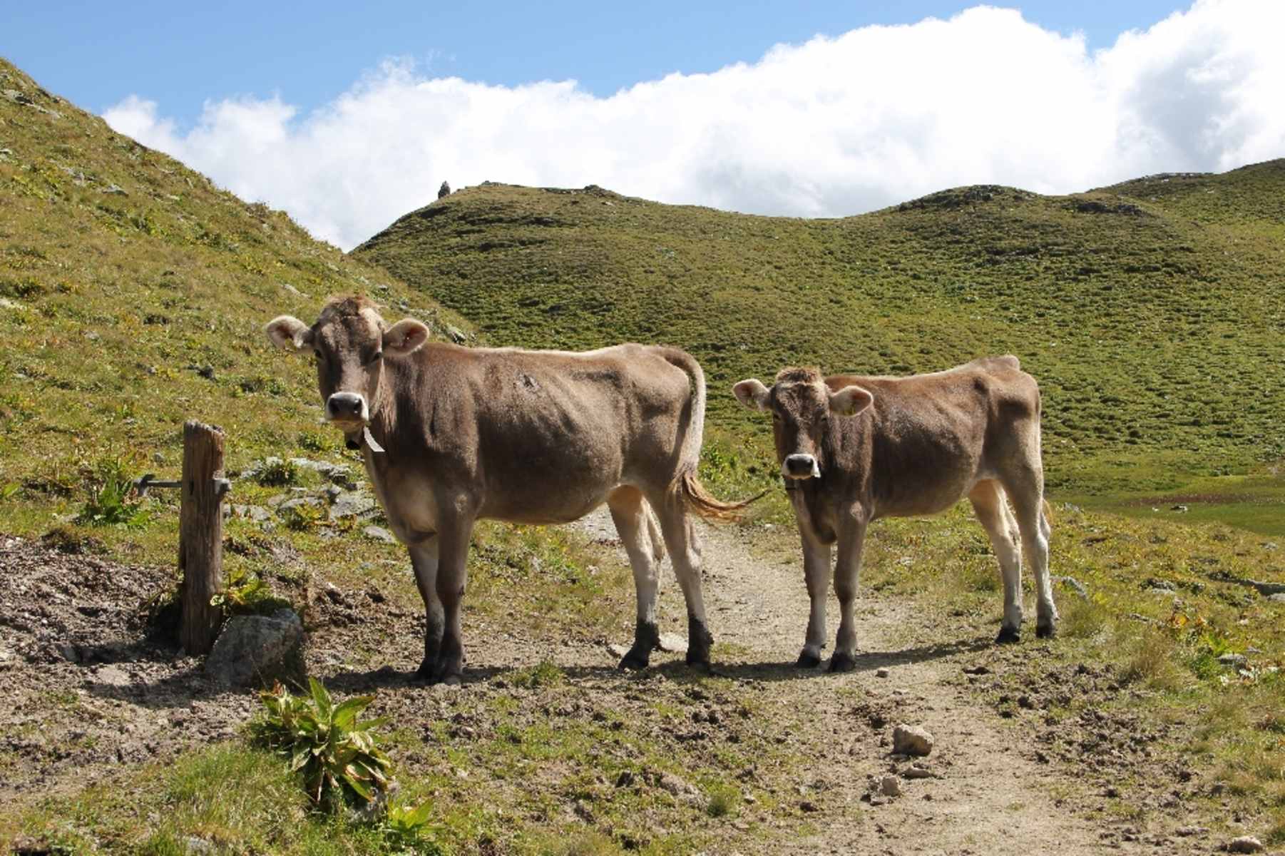 In Riefa, 1.800 m, gehen wir am Wendeplatz des Wanderbusses gut 75 m auf dem Almweg zurück und biegen rechts in den mit Alp Tomül ausgeschilderten Wanderweg ein. Nach 10 Minuten treffen wir auf einen breiten Weg, dem wir durch schönen Mischwald aus Lärchen und Fichten weiter aufwärts nach Pradätsch, 1.954 m, folgen.