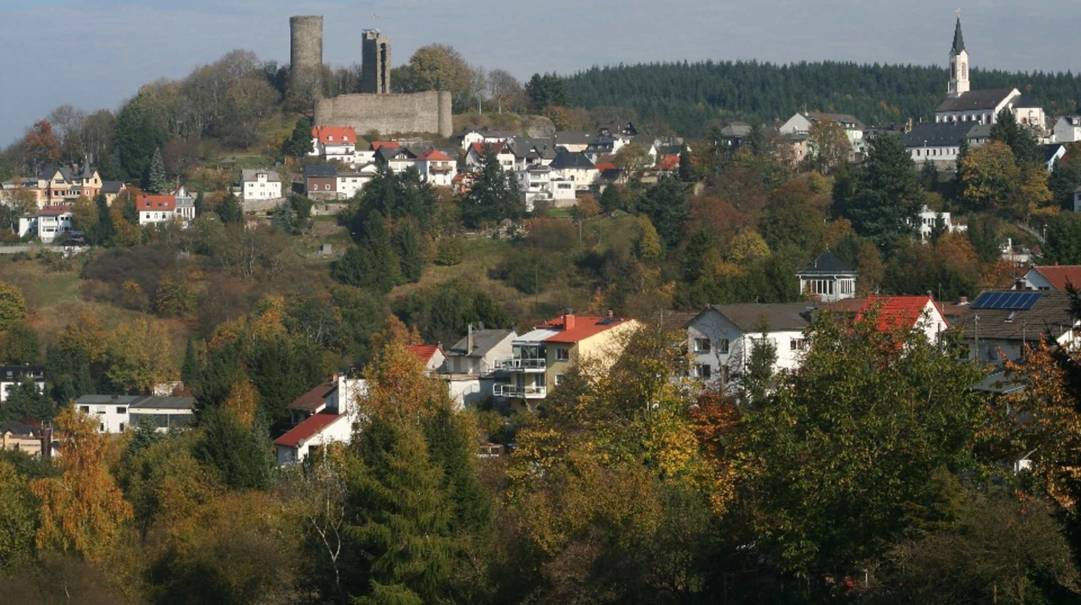 Talauen, Burgruinen und Aussichtsfelsen im wanderbaren Hessen: Malerisch liegt der Luftkurort Schmitten im oberen Weiltal (Rheinisches Schiefergebirge) eingebettet. Er gilt als schönster Ausgangspunkt für die Erwanderung des Großen Feldbergs.