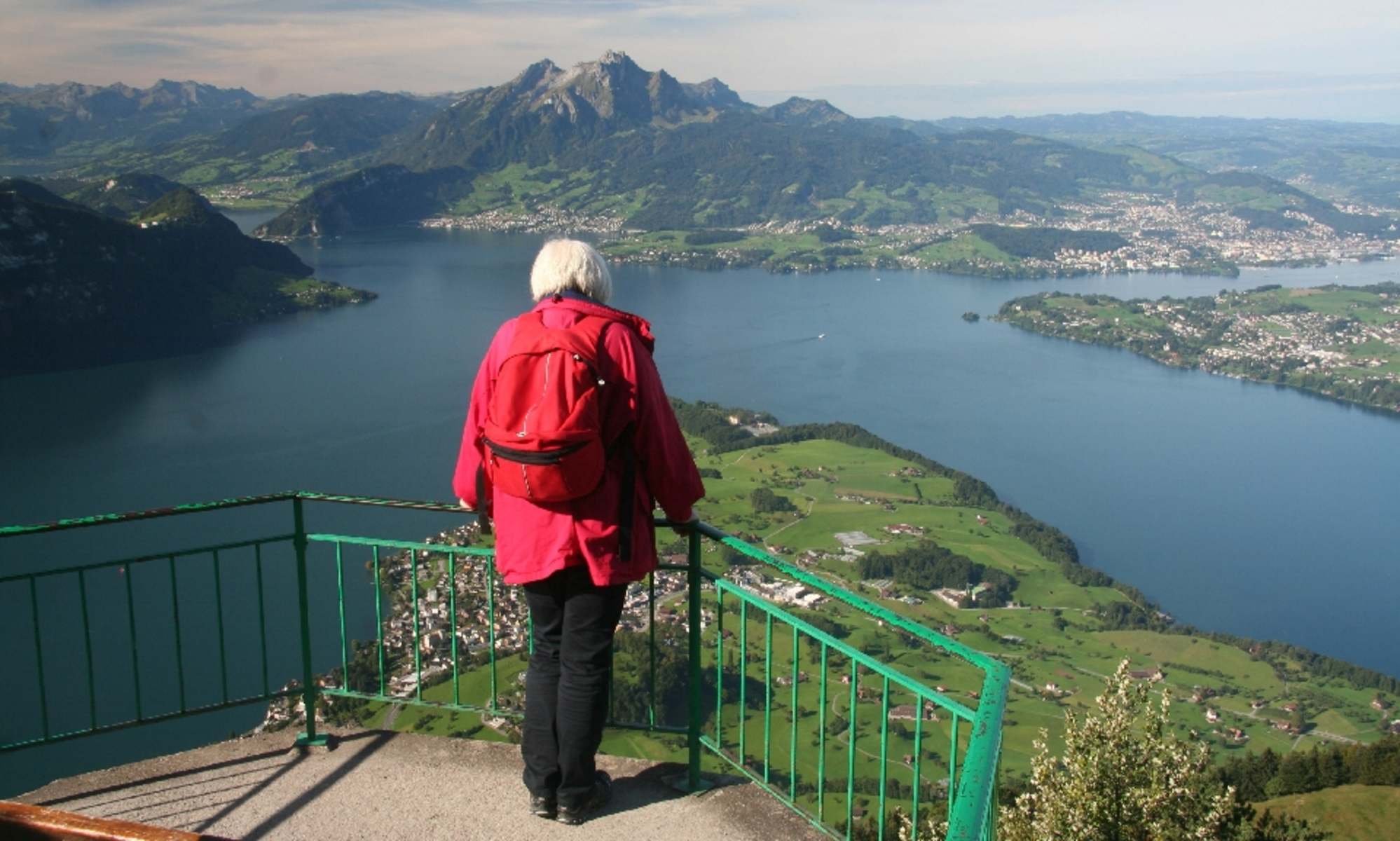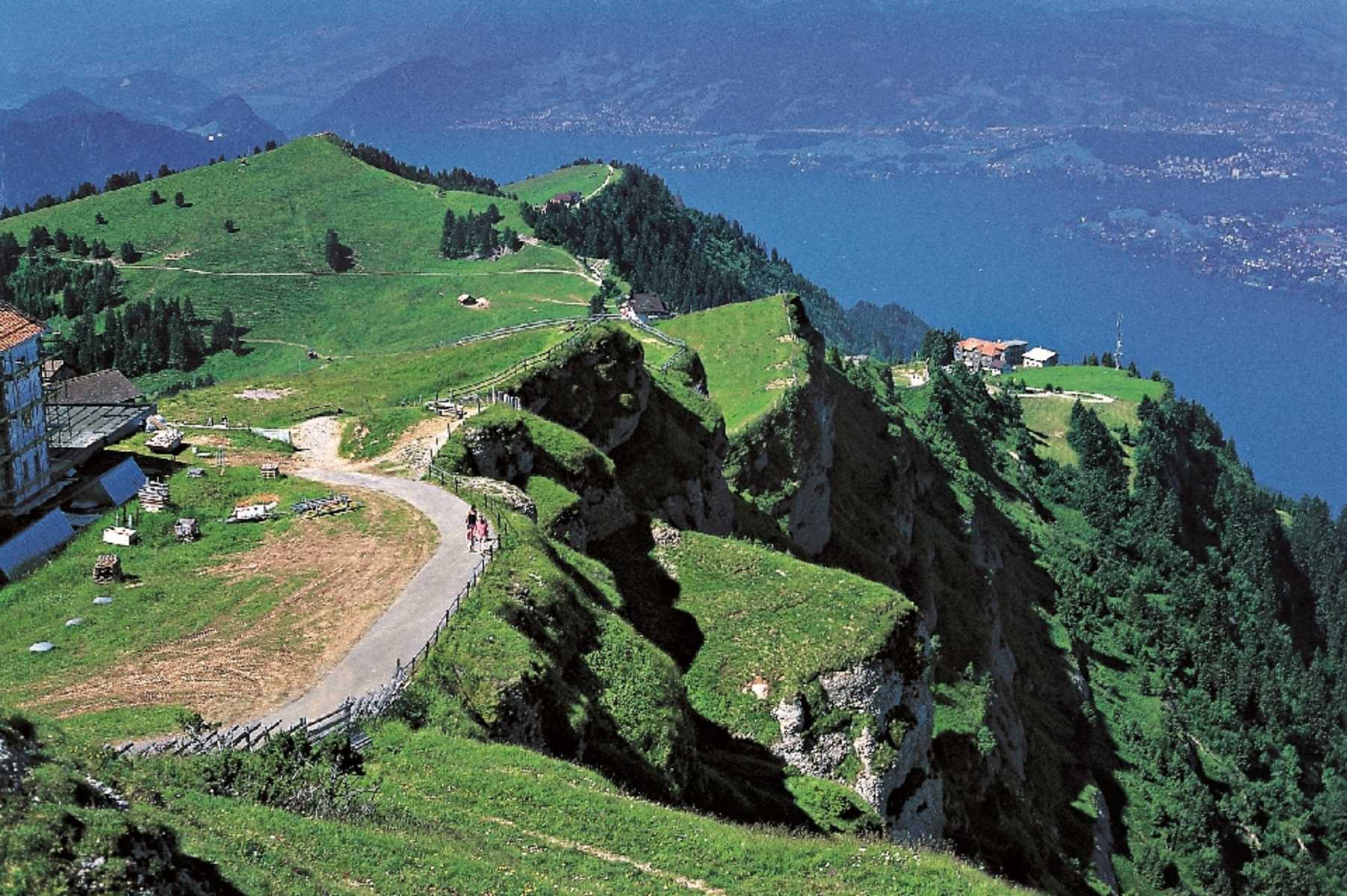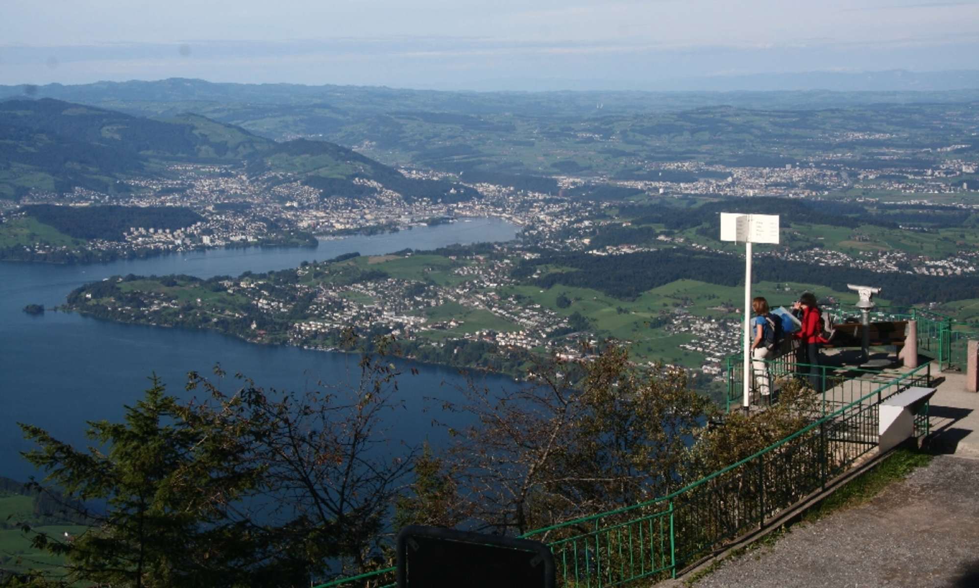 Wanderung auf einen Aussichtsgipfel par excellence: Zu den bekanntesten Erhebungen der Schweiz zählt die halbinselartig in den Vierwaldstätter See vorspringende, zu zwei Dritteln von Wasser umgebene Rigi-Kulm (1.797 m) im Kanton Luzern in der Zentralschweiz. Ihr Gipfelpanorama über die Schwyzer Alpen besitzt Weltruhm, und der Name „Rigi" ist zum Synonym für fesselnde Aussicht geworden. Als Säule des Innerschweizer Fremdenverkehrs trägt die Rigi heute gut ein Dutzend Bergbahnen. Das hat die Wandermöglichkeiten im Rigi-Massiv aber nicht eingeschränkt.