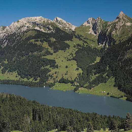Von dort leiten Alpwege via Hohfläschenhütte (1.368 m) abwärts nach Aberli, wo sich der Kreis schließt.