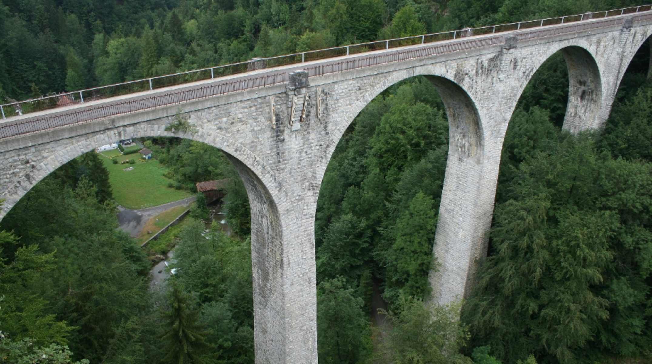 Man kann auch von der Wildenburg zurück zur Tobelbrücke gehen und über die alte Sandsteinbrücke hinab zu den Höllgrotten.